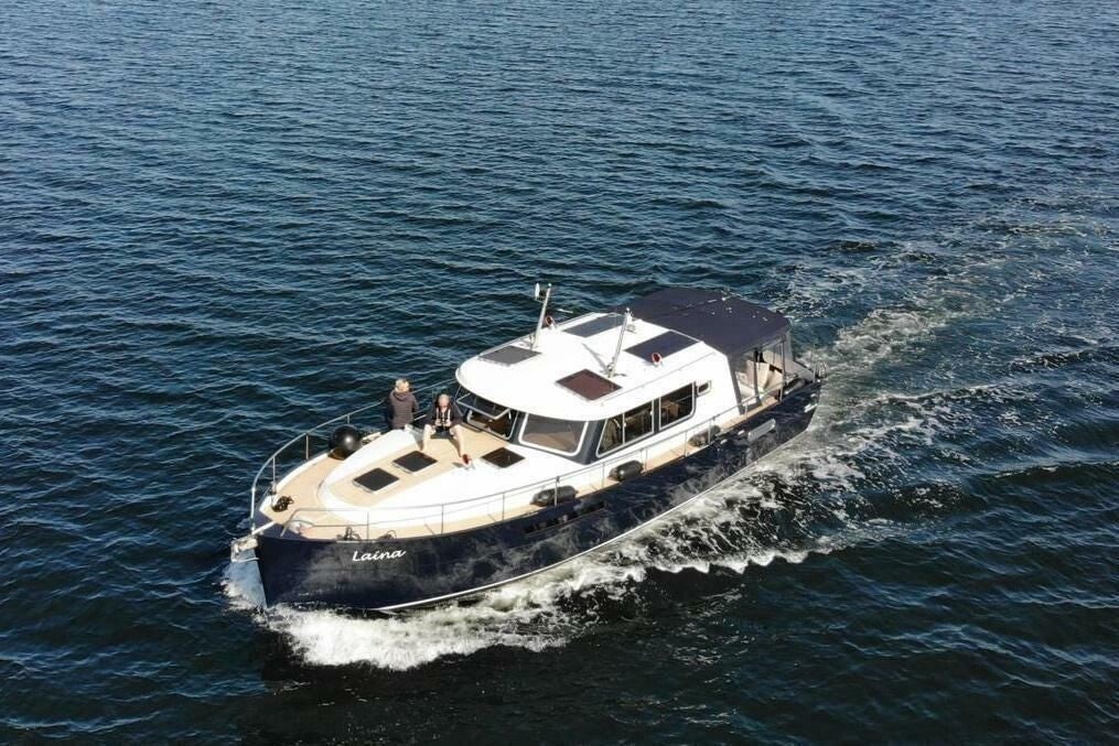 Met 2,40 meter kruiphoogte kan de boot onder lage bruggen door. De slanke lijnen voor zuinig varen doen niet af aan bruikbare ruimte. Ze zorgen wel voor een rustig varend schip dat lekker door de golven loopt. De messcherpe boeg van de robuust gebouwde semi-rondspant snijdt door het water en met wat hogere snelheid bijt de kont flink vast voor meer dynamische stabiliteit, het lage zwaartepunt doet de rest tegen grote rolbewegingen.