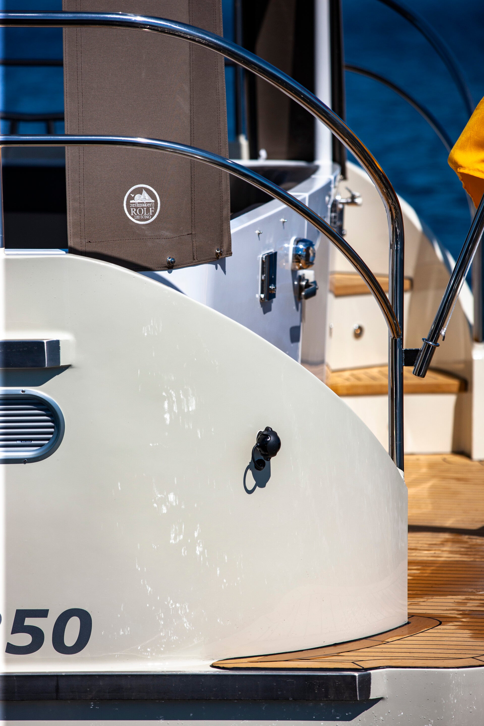 Nieuw is dat het dak doorloopt tot over de kuip. Gebleven is de pet voorop. Anders dan bij voorgaande modellen is ook de raampartij aan beide zijden van de opbouw. Deze bestaat nu uit één stuk. Verder heeft het motorjacht twee rompramen aan elke zijde en in totaal zes patrijspoorten in de opbouw. De Tigo-lijn heeft een dubbele verschansing en een roestvast stalen stootrand en een dito rand rond het grote zwemplateau die doorloopt tot en met de kuip. Vanaf het zwemplatform kom je via een centrale toegangsdeur in de kuip. Hier aan weerskanten twee L-banken en aan beide zijden een toegang tot de gangboorden.