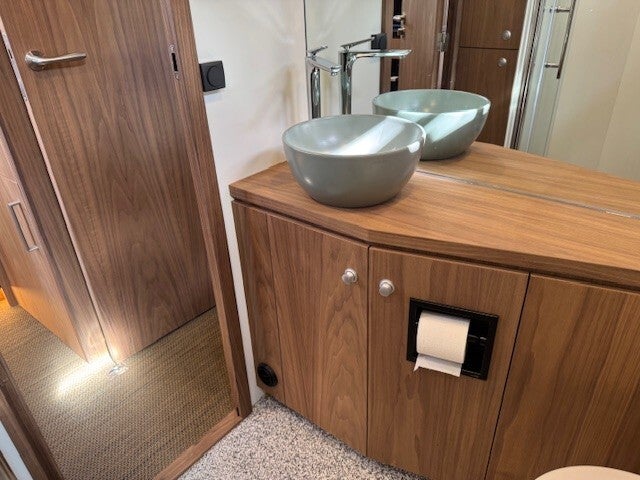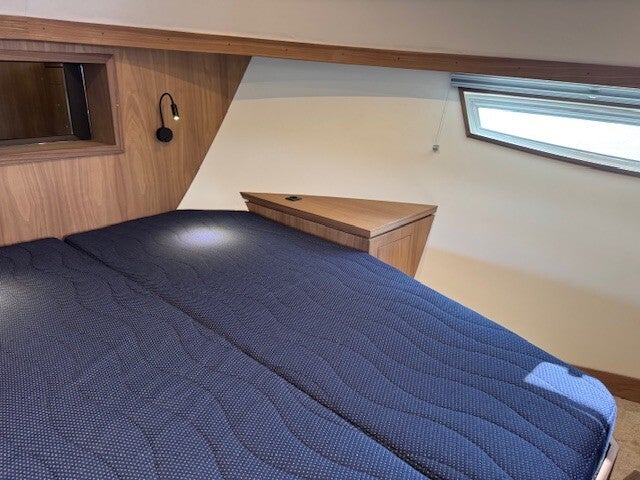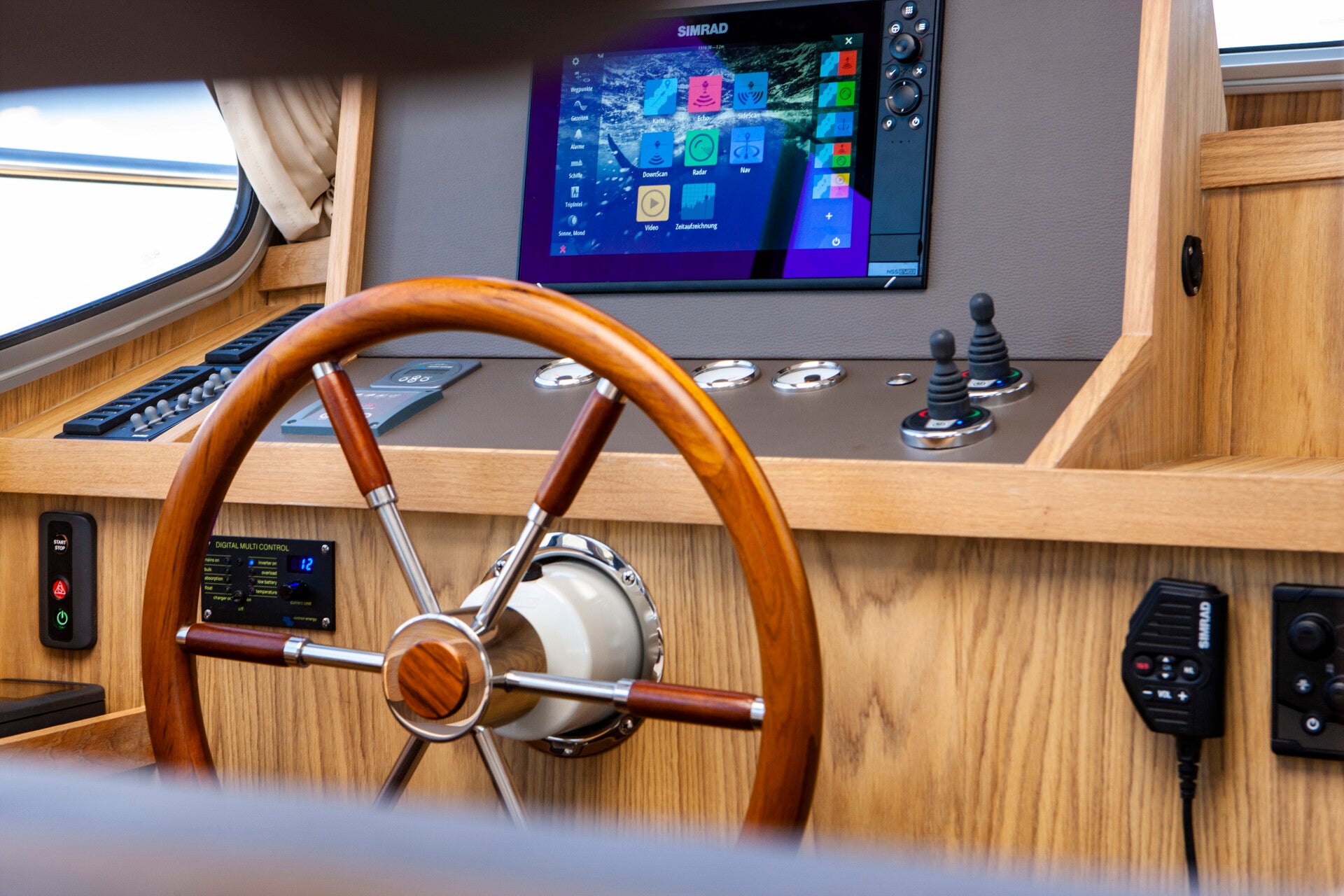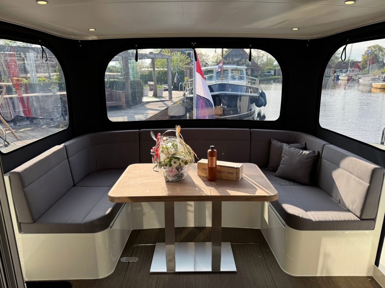 De deur in de spiegel heeft plaats gemaakt voor een zeer royale u-bank waar de ingang naar de kuip nu aan BB en SB zijde zijn geplaatst. Door de keuken in de 1350 S naar beneden te plaatsen is er boven ruimte voor een dinette en een royale bank.